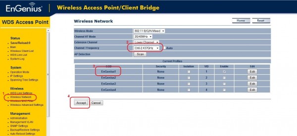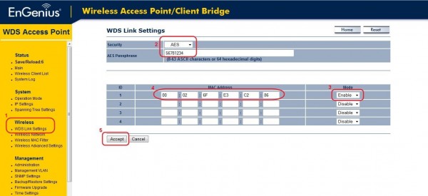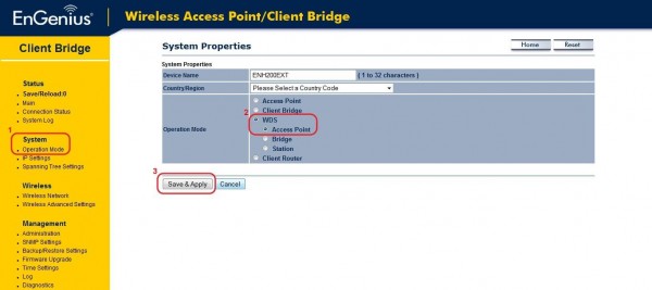 2. Select WDS Access Point mode