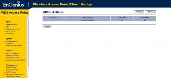 1. Confirm status on the WDS Link Status page